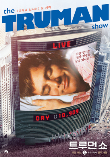 트루먼 쇼는 30년간 트루먼의 삶이 전 세계에 생중계되고 있는 리얼리티 쇼였던 것입니다.